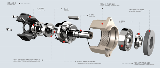 精密配件:減速機核心部件采用歐洲,日本,臺灣等地進(jìn)口部件,精度高,運行壽命>10000小時。